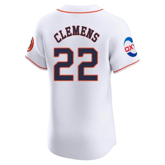 The Men’s Roger Clemens Houston Astros Elite White Home Patch Jersey keeps the wearer cool, dry, and comfortable for the ultimate in performance apparel.