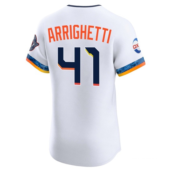 The Men’s Spencer Arrighetti Houston Astros Elite White 2025 City Connect Jersey keeps the wearer cool, dry, and comfortable for the ultimate in performance apparel.