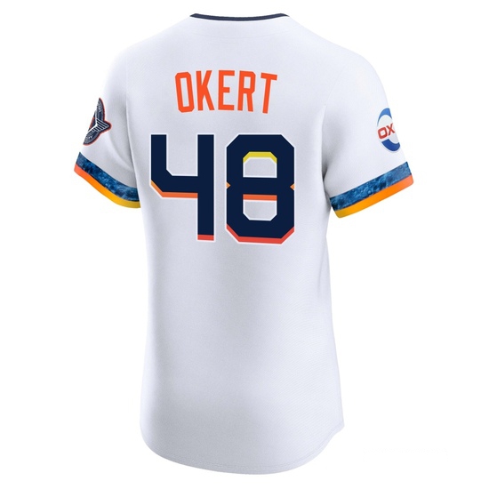 The Men’s Steven Okert Houston Astros Elite White 2025 City Connect Jersey keeps the wearer cool, dry, and comfortable for the ultimate in performance apparel.