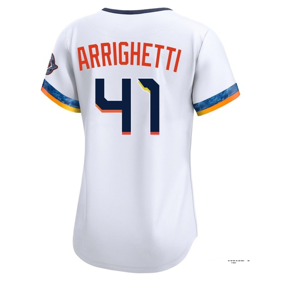 The Women’s Spencer Arrighetti Houston Astros Limited White 2025 City Connect Jersey is second to none. Made of a technologically advanced fabric, the jersey keeps the wearer cool, dry, and comfortable for the ultimate in performance apparel.